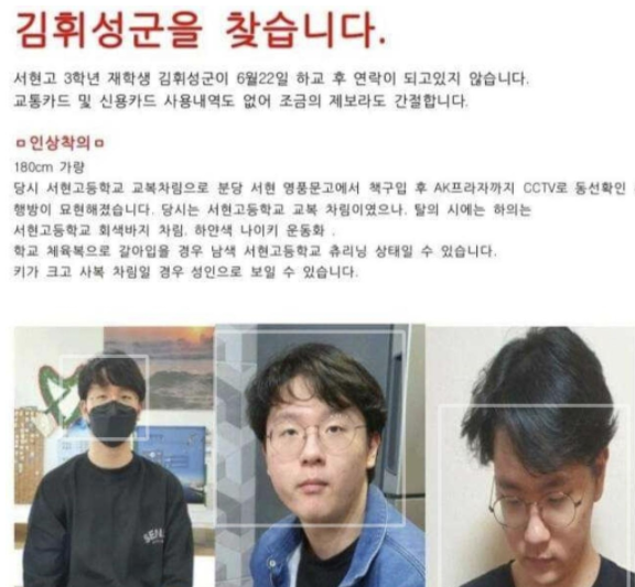 17분당 서현고 3학년 남학생이 실종됐답니다.73.